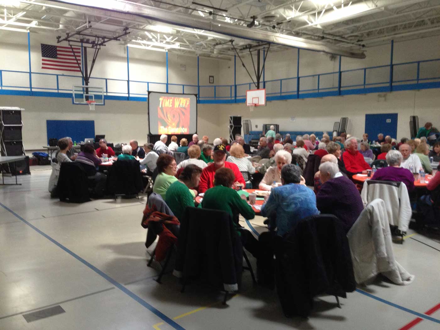 "Time Warp" The Game Show is custom made for Sr. Citizens. Classic Movies, Classic Televison Shows, Classic Gameshows, and Music. Contestants play at their tables as a team. Projected video cilps, Questions, Catagories, and Electronc Scoreboard. New LED Globe table centerpieces chase around the tables and end on the table to answer the question. 60-120 minutes in length. Prizes are available. Call or e-mail to answer any questions or set up a demonstration.