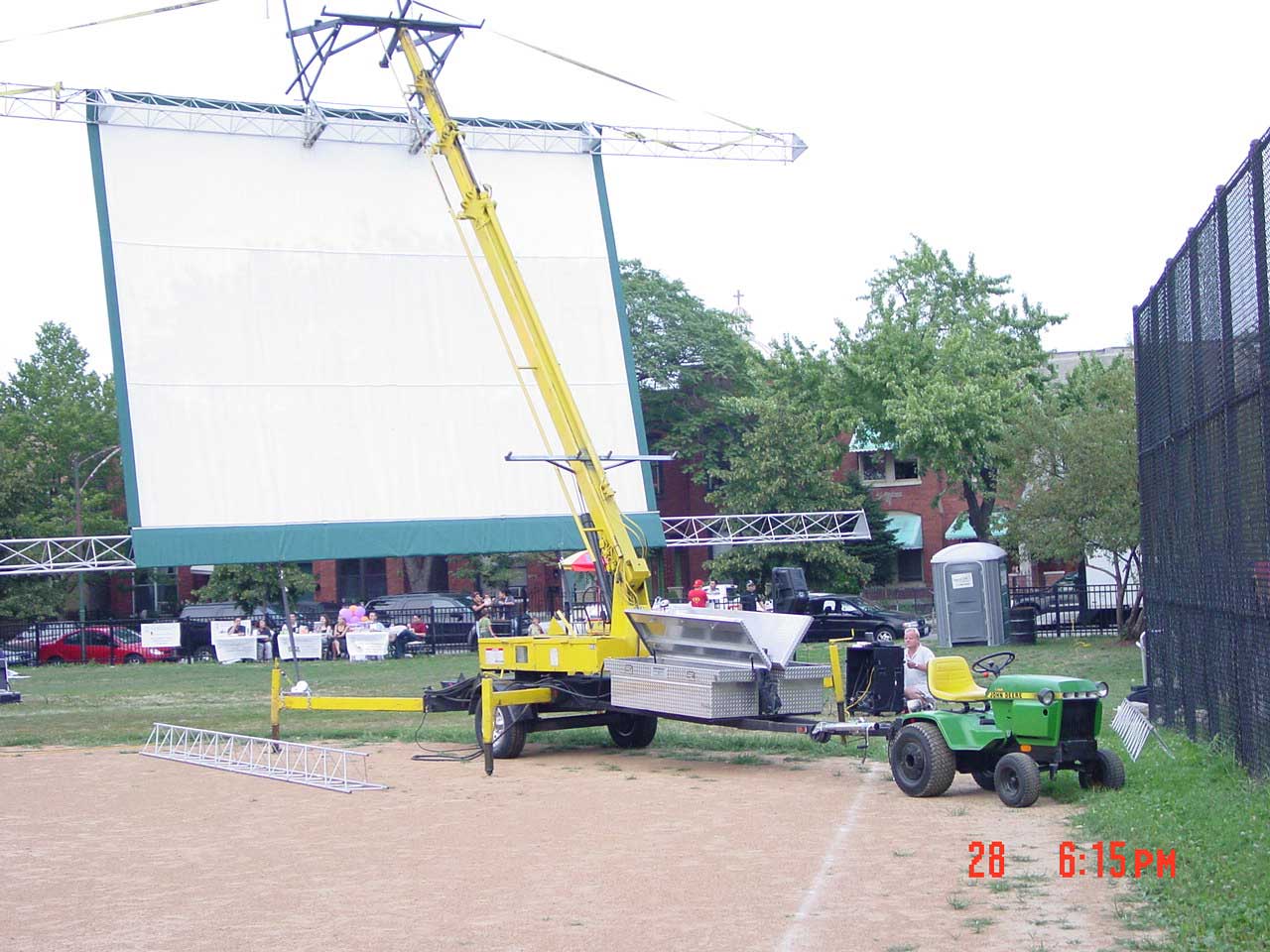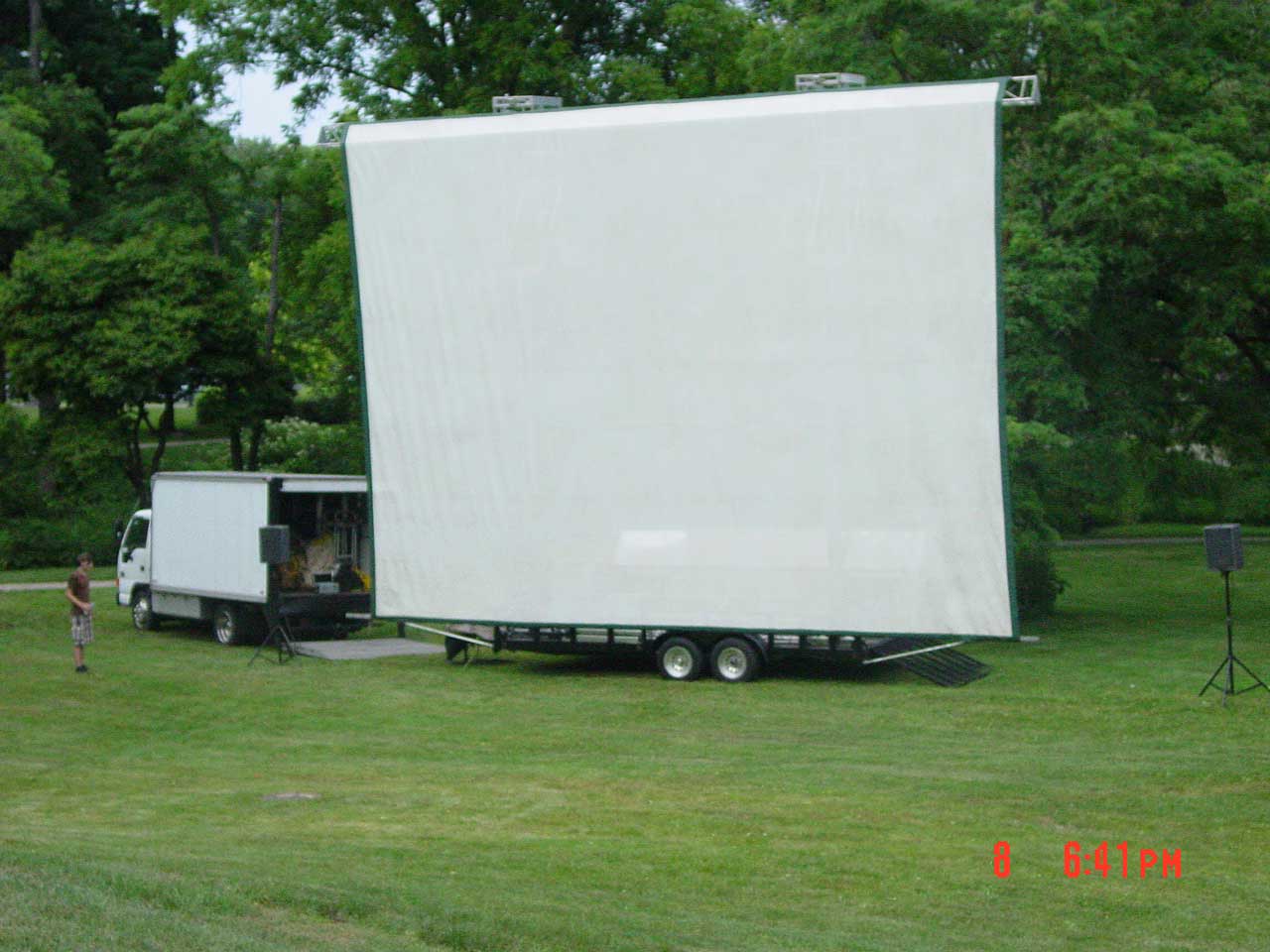 Smallest Tailer mounted screen 12' X 20' front projection with a rear projection option