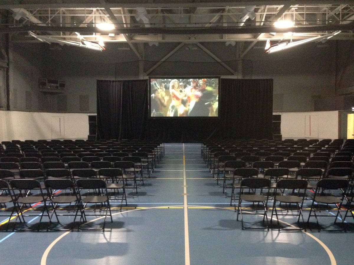 Our most popular screen size option 16' x 32' Front Projection flow thru screen.